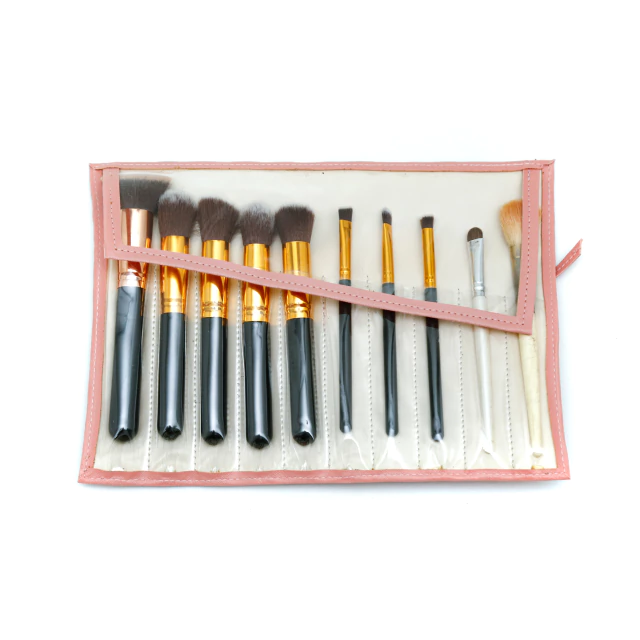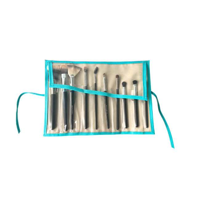 O Porta Pincel é produzido no couro ecológico. Possui dez compartimentos em cristal transparente para os pinceis e tampa protetora também em plástico cristal. Para fechar, basta enrolar e amarrar com a tirinha de couro fixada na parte de trás do produto.